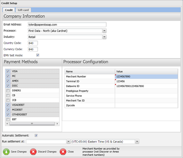 Do not change your store's Processor or Industry on the Credit Setup window. If you need to change processors, follow the steps outlined in the Changing the Processor for a Store section of the Editing a Store topic.