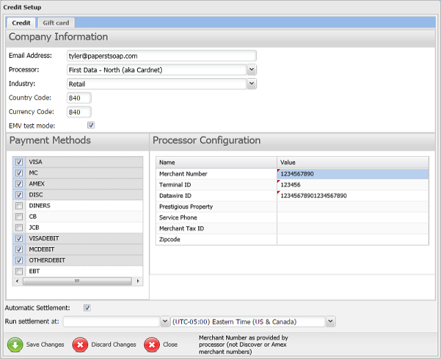 3. On the ClosedCredit Setup window, select the check boxes for the Payment Methods you accept at your store.